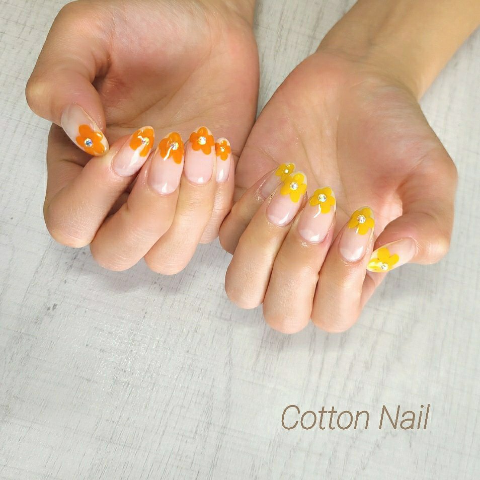 春 ハンド フラワー オレンジ イエロー Cotton Nailのネイルデザイン No ネイルブック